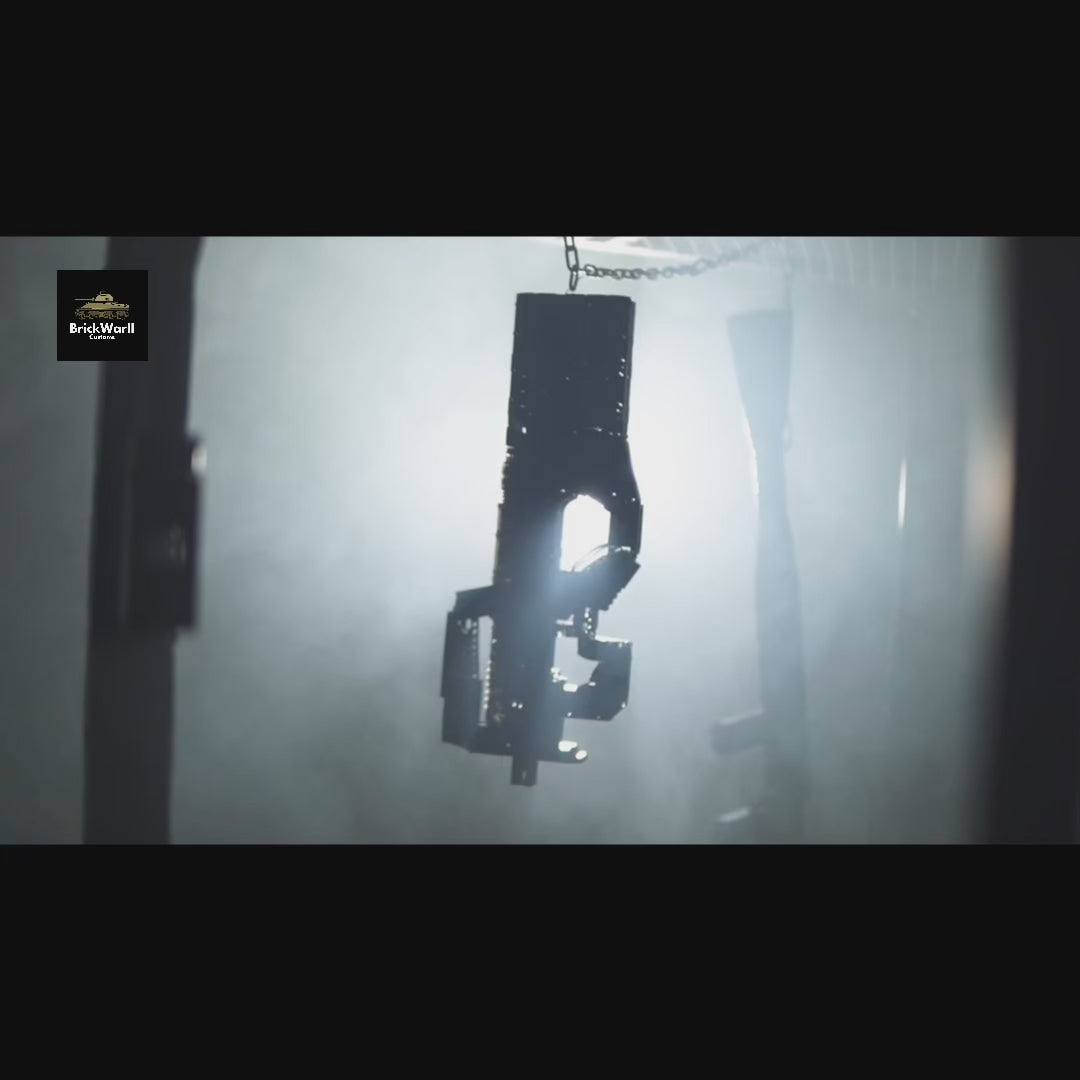 1:1 scale FN P90 — built from 1,589 pieces and compatible with bricks from other brands. This motorized model recreates the futuristic Belgian PDW with electric motor-driven high-speed rapid fire. Features the iconic bullpup design with stockless structure, compact 50cm length, and top-mounted magazine. Includes motor, battery case, and switch for full-auto action. The sci-fi favorite — now in brick form.